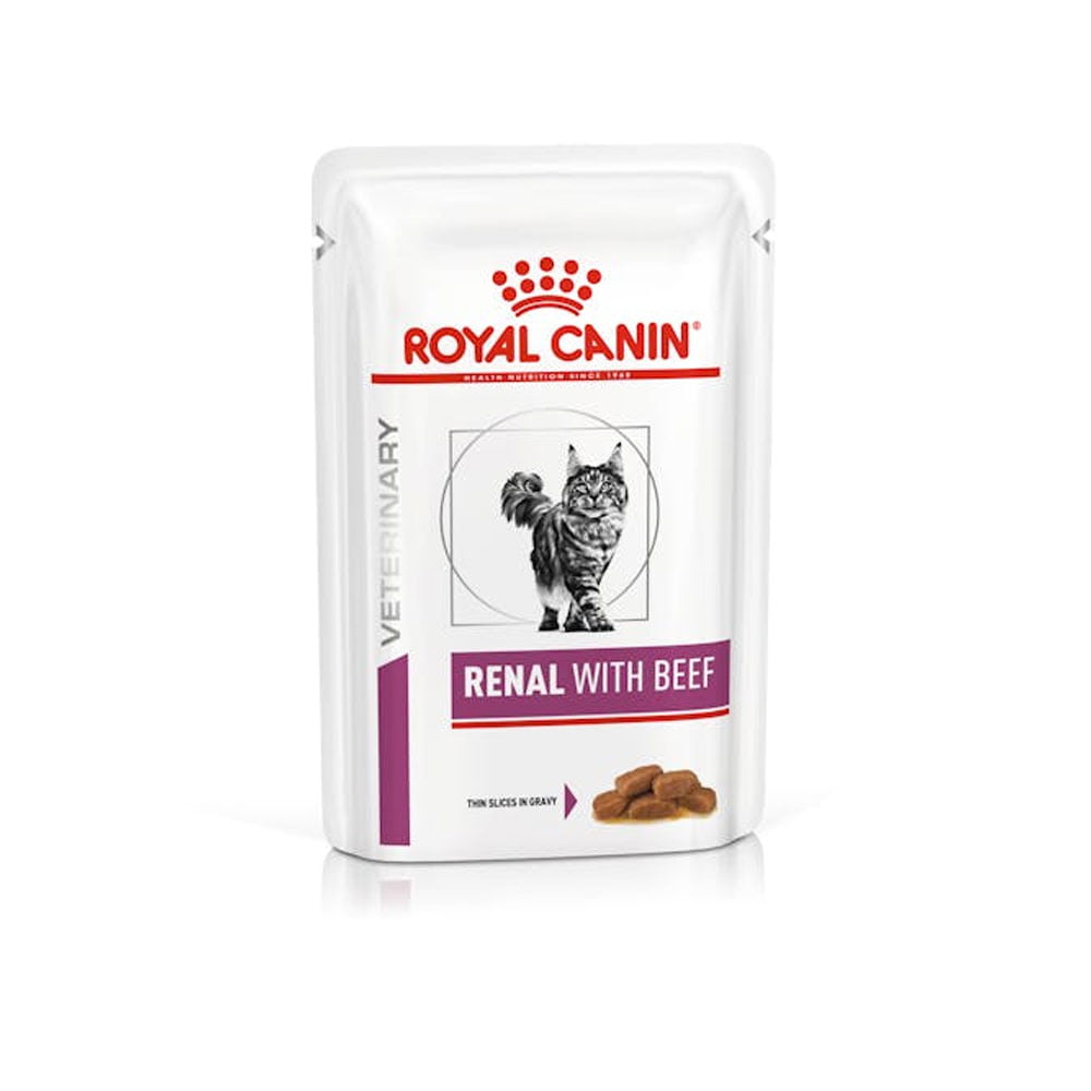 Το Royal Canin Cat RENAL WITH BEEF είναι ένα ειδικά σχεδιασμένο θεραπευτικό τροφίμο που στοχεύει στην υποστήριξη των γατών με νεφρικές παθήσεις. Αυτή η τροφή προσφέρει μια ισορροπημένη διατροφή με χαμηλή περιεκτικότητα σε ασβέστιο και βιταμίνη D, συμβάλλοντας στην πρόληψη του σχηματισμού λίθων από οξαλικό οξύ. Επίσης, ενισχύει την αλκαλοποίηση των ούρων, βοηθώντας στη διατήρηση ενός υγιούς περιβάλλοντος στο νεφρικό σύστημα της γάτας σας. Πριν από τη χρήση, συνίσταται η συμβουλή ενός κτηνιάτρου. Χρησιμοποιήστε την τροφή RENAL WITH BEEF για έως και 6 μήνες για την υποστήριξη σε περιπτώσεις χρόνιας νεφρικής ανεπάρκειας και για την προληπτική φροντίδα κατά του σχηματισμού λίθων. Με ένα μίγμα ποιοτικών πρωτεϊνών από κοτόπουλο, χοιρινό και βοδινό, καθώς και ζωτικά μέταλλα και βιταμίνες, προσφέρει μια ισορροπημένη και νόστιμη διατροφή.